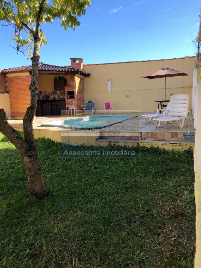Leandro Cidade. Casa 2 suítes, sacada, 4 banheiros, toda em piso porcelanato, semi-mobiliada, sala de janta, sala de estar integrada, sala de tv integrada. 150 m² de área de lazer, quiosque com churrasqueira, salão de festas com churrasqueira, amplo pátio com piscina. Garagem fechada para 1 carro + 2 carros descobertas. 5 minutos do centro de Viamão, Próximo a escolas e creches, posto de saúde, comércio em geral. Plantão whats 51 981162752