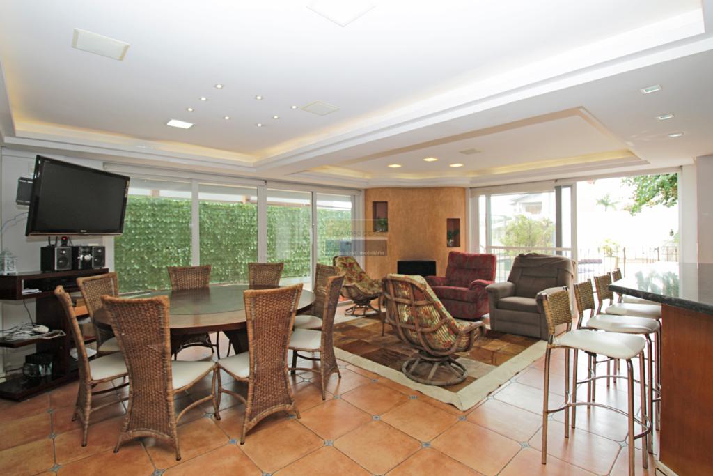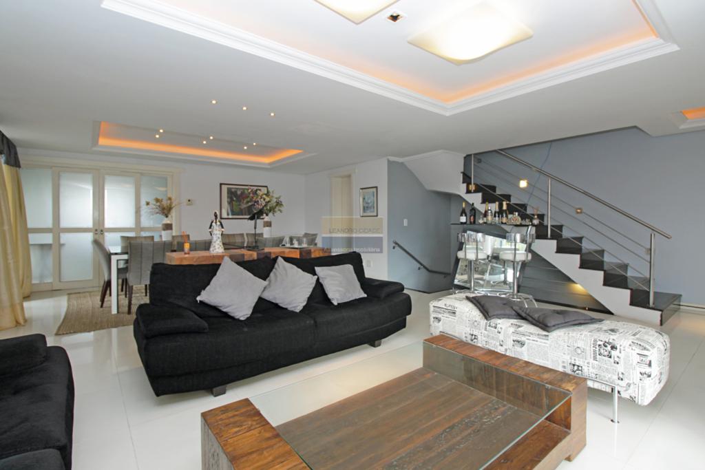Leandro Cidade. Condomínio Cantegril em Viamão - possui 3 andares e uma área privativa construída de 380m², distribuída em ambientes confortáveis e aconchegantes. No andar térreo amplo salão de festas integrado, O espaço gourmet amplo, cozinha gourmet está totalmente mobiliada com móveis planejados, fogão, churrasqueira e uma lareira. belíssima área externa, que oferece piscina aquecida com o badalado Wet Bar (bar molhado), onde você poderá desfrutar drinks e curtir o sol, além do espaço para as espreguiçadeiras e a piscina infantil lindo pergolado integrado a área verde, onde é possível relaxar na sombra. Neste andar também tem um banheiro e um ambiente que pode servir como dormitório, escritório, sala de brinquedos. No 2º andar, temos uma ampla sala de estar/jantar, muito confortável e elegante mobiliada com uma mesa de 10 lugares. lavabo, uma segunda cozinha, totalmente mobiliada e a lavanderia. sala de cinema particular, decorada lindamente poltronas, telão, com iluminação especial e acústica, A calefação garante ambientes quentinhos nos dias de inverno.