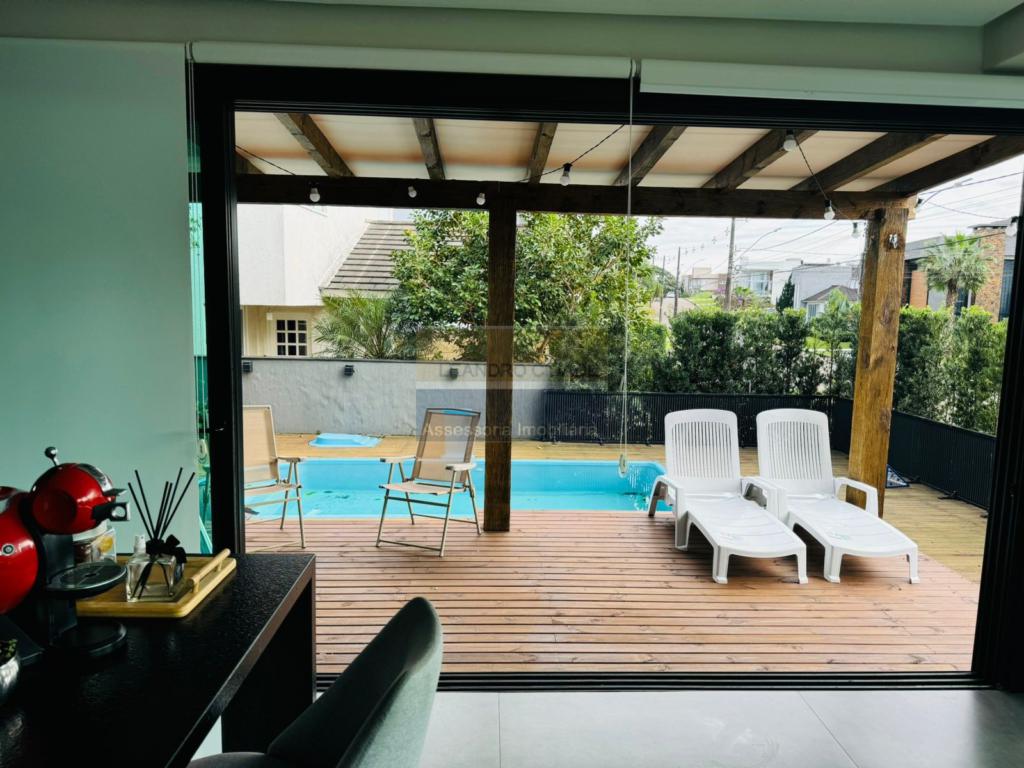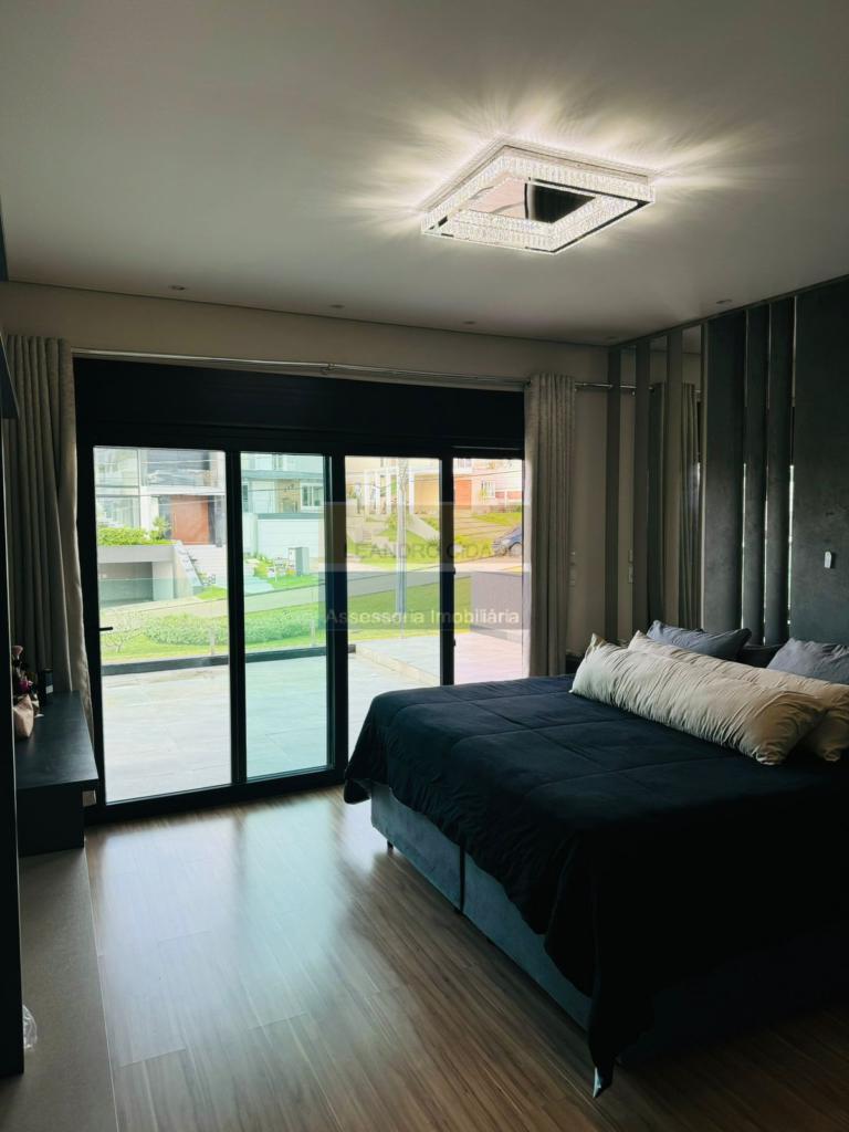 LEANDRO CIDADE, CONDOMINIO BUENA VISTA- Casa de esquina na principal Avenida do condomínio, 4 suítes, closet, sendo uma suíte na parte de baixo, Living 3 ambientes em conceito aberto, pé direito duplo com lindo luste em cristal. toda mobiliada com móveis sob-medida de alta qualidade, piso em porcelanato, teto com gesso, lareira toda revestida, espaço gourmet com churrasqueira e chapa à gás, lavabo, despensa, lavanderia e sauna. Pátio com deck em madeira, piscina (3,0 x 6,0), pergolado. lindo paisagismo, garagem coberta para 2 carros, mais 2 carros. Condomínio conta com infraestrutura de clube, 2 portarias ( social e serviço), segurança, 3 salões de festas, piscina adulto e infantil, espaço kids, academia, restaurante, salão de beleza, quadras de esportes, quadra de tênis, pracinha, pista de patins e skate, quadra de bocha, quiosques com churrasqueiras, tv e frezer. O Buenavista Condominio Parque é uma excelente opção de moradia para que procura associar lazer, segurança e convívio com a natureza, são mais de 130.000m² de área verde e conta com uma infra-estrutura de lazer completíssima, são mais de 25 itens de lazer para desfrutar. Condomínio com excelente localização, ao lado do colégio Marista, do campus da Ufrgs e muito próximo da Puc. Plantão no local.
