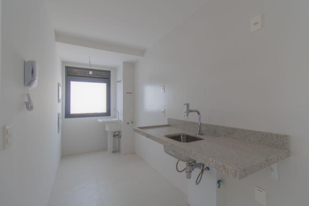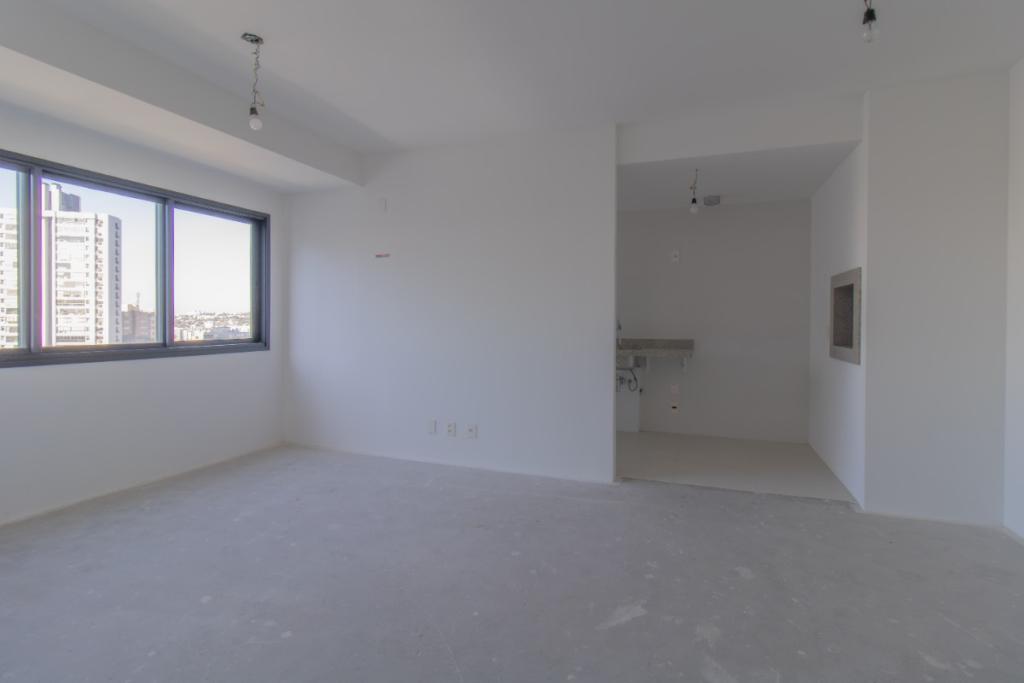 Leandro Cidade. Float Residences - Apartamento de 67m², dois dormitórios (sendo uma suíte), banheiro social, living, cozinha com churrasqueira, sacada e uma vaga de garagem coberta.
