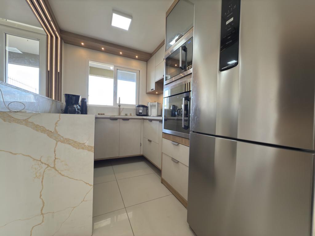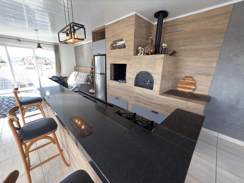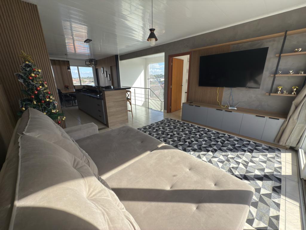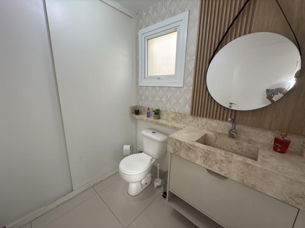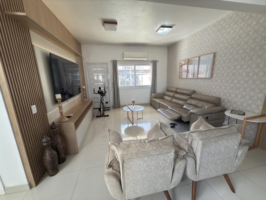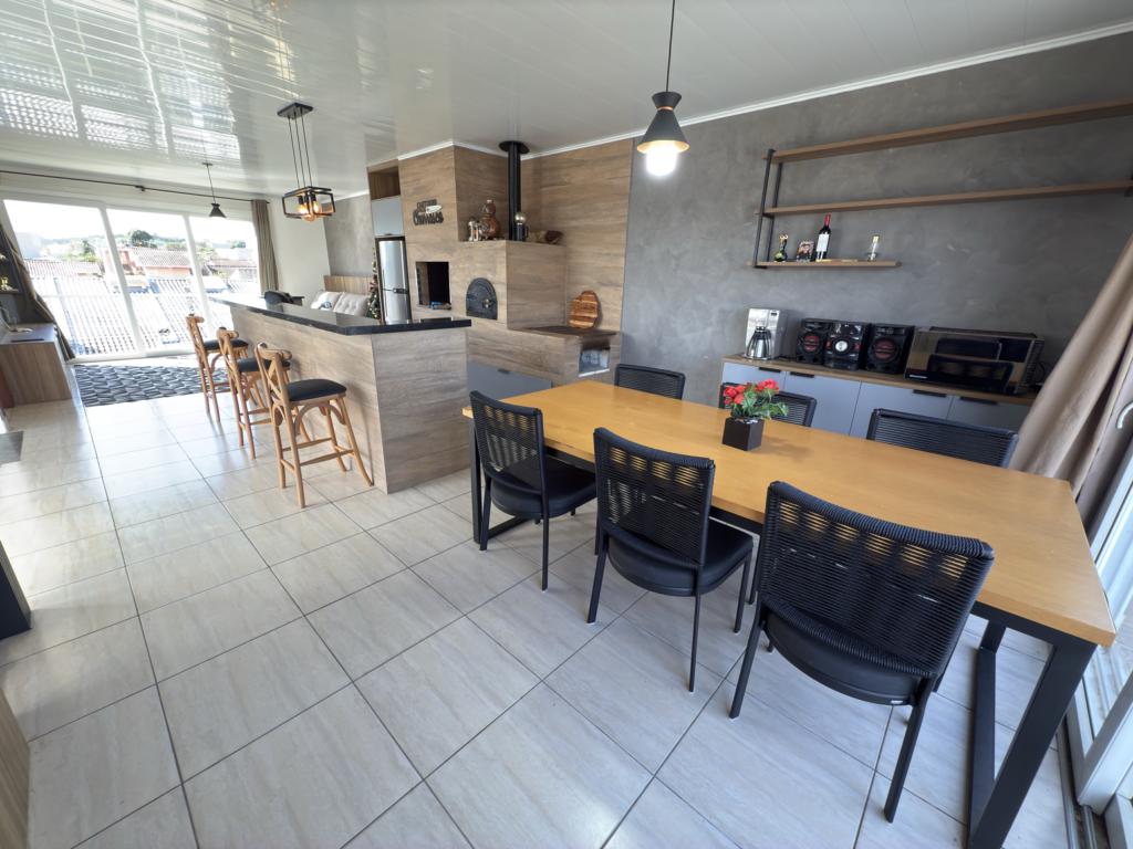 Parte térrea: living 3 ambinetes em conceito aberto, banheiro social, sala de jantar, cozinha montada com armários sob - medida e pátio.