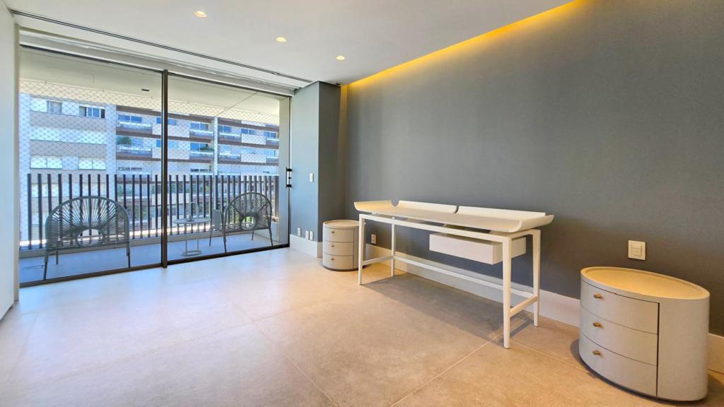 Leandro Cidade. Luciana 250 - Empreendimento de alto padrão, apartamentos com 387m² de área privativa, 4 suítes, 4 vagas, semi mobiliado. O apartamento frente à fundos, lavabo, lareira e churrasqueira. Diferenciais do condomínio: Isolamento acústico; ar condicionado central; espera para automação residencial; gerador de energia; sisitema de segurança; brinquedoteca; salão de festas equipado; fitness; sauna seca e umida; sala de massagem; piscina aquecida.