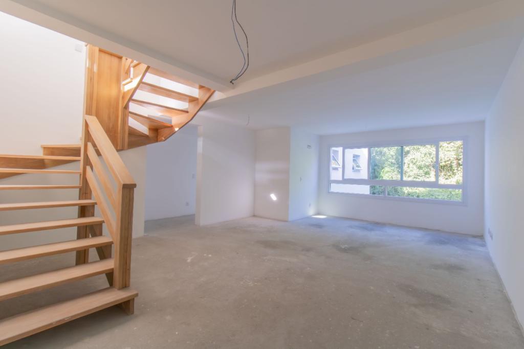 Leandro Cidade. HILL 160 - Apartamento Duplex. Primeiro Pavimento: 3 dormitórios, sendo 1 suite, living 2 ambientes, banheiro social, área de serviço e cozinha. Piso superior com 1 suíte, lavabo, amplo living com churrasqueira, e terraço com espera para piscina e vista perene para o Guaiba, Beira-Rio, Parque Marinha do Brasil e Centro da cidade. O imóvel possui 3 vagas de garagem. Prédio com Bosque, Brinquedoteca, Cerca Elétrica, Churrasqueira no Condomínio