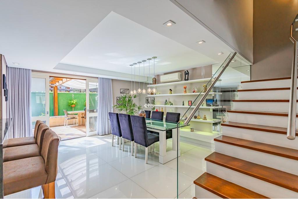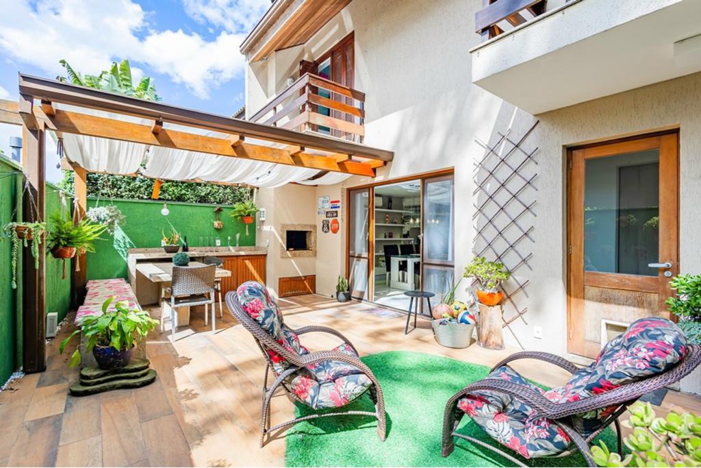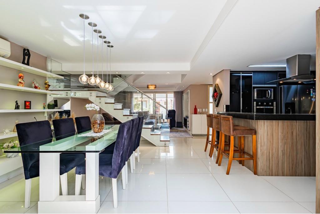 LEANDRO CIDADE. Condomínio Doce Vida - Casa em condomínio Fechado 241m² privativos distribuído em 3 pisos. O primeiro deles possui, uma belíssima cozinha americana com área de serviço, um grande living com 2 ambientes, um lavabo e um maravilhoso quintal, além de 2 vagas de garagem. No segundo piso há 3 dormitórios, sendo uma ampla suíte com sacada e closet. E por fim, no quarto piso, há mais um dormitório, que é uma ampla suíte! O imóvel possui posição solar norte, sendo muito ventilado e ensolarado, principalmente no final da manhã e início da tarde. A casa conta com churrasqueira privativa, escritório e água quente. A casa ficará semi-mobiliada, ficando os móveis da cozinha e dos banheiros. Oportunidade perfeita para família que deseja muito espaço, tranquilidade e conforto!